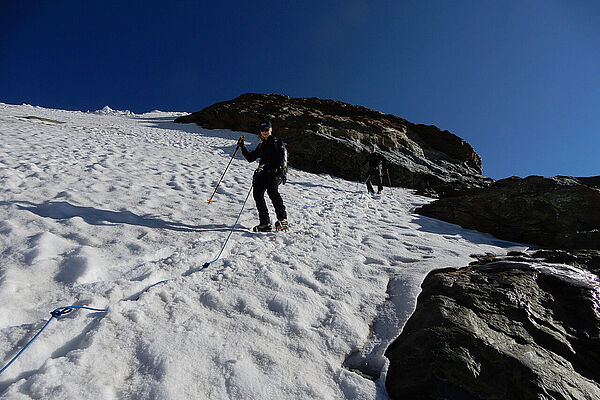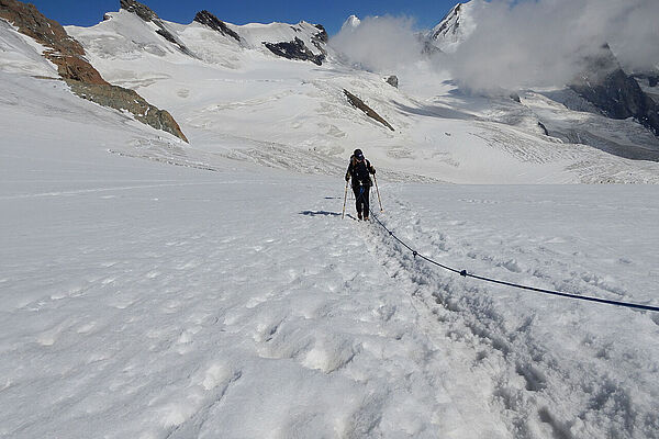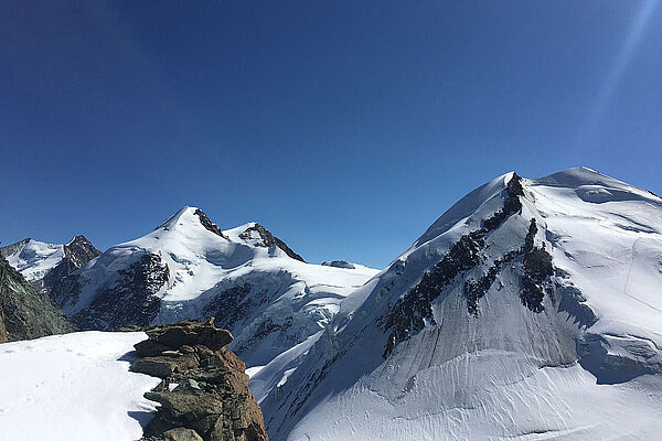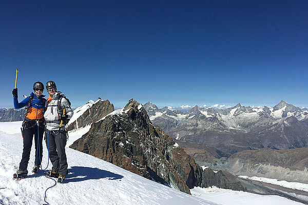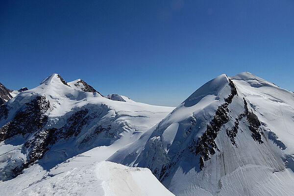Bei verkürzten Öffnungszeiten der Bergbahnen in Zermatt mussten wir uns ganz schön beeilen ;) Ein Traumtag :) ... und am Gipfel fast allein. Südlich vom Breithorn eröffnet sich ein weiter Blick in Richtung Italien.