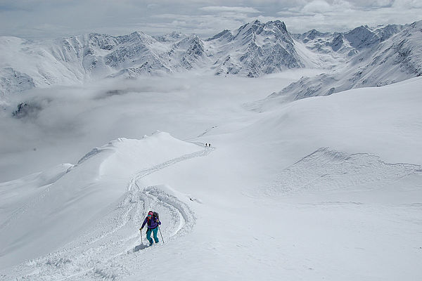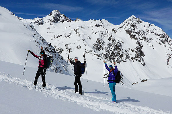 Abwechslungsreich und mit einigen Überraschungen fand unsere 1. Mädls Tour in den nördlichen Stubaier Alpen statt. Begonnen hat alles mit einem Wettersturz und bis zu 50cm Neuschnee in der Höhe. Am letzten Tag durften wir dann noch in feinstem Firn die Südhänge runter kurven ;)