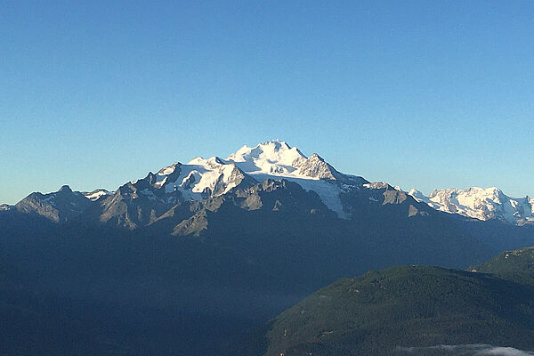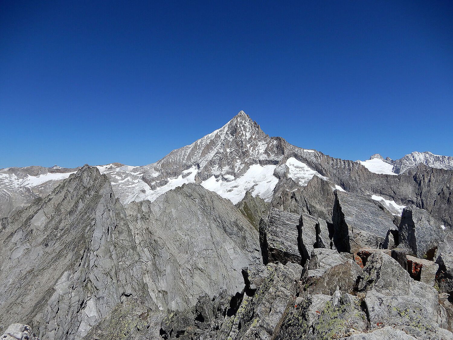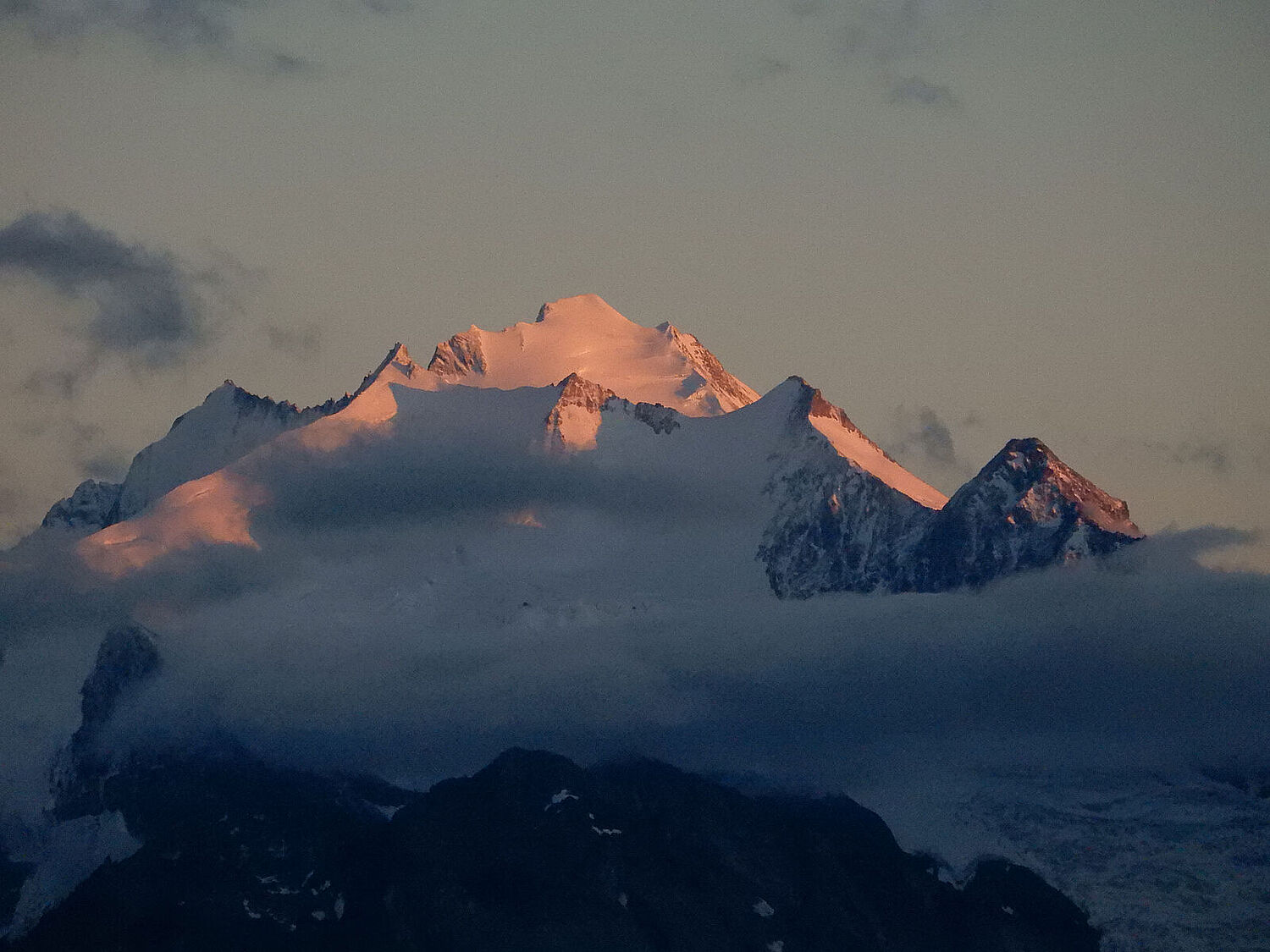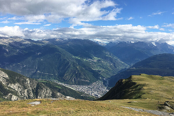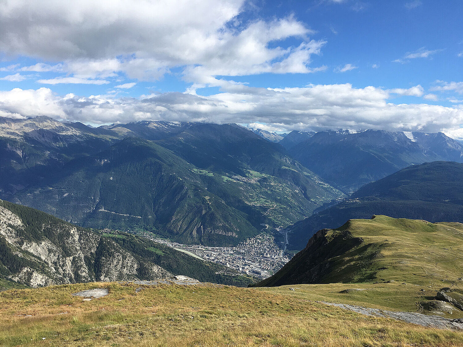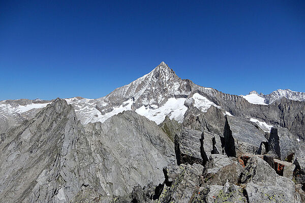 Das bekannte und formschöne Bitschhorn in der Nähe versteckt sich bis man kurz vor dem Gipfel des Wiwannihorns steht. Für Wanderer bietet der Hüttenzustieg ein sonniges Ambiente oberhalb von Ausserberg.