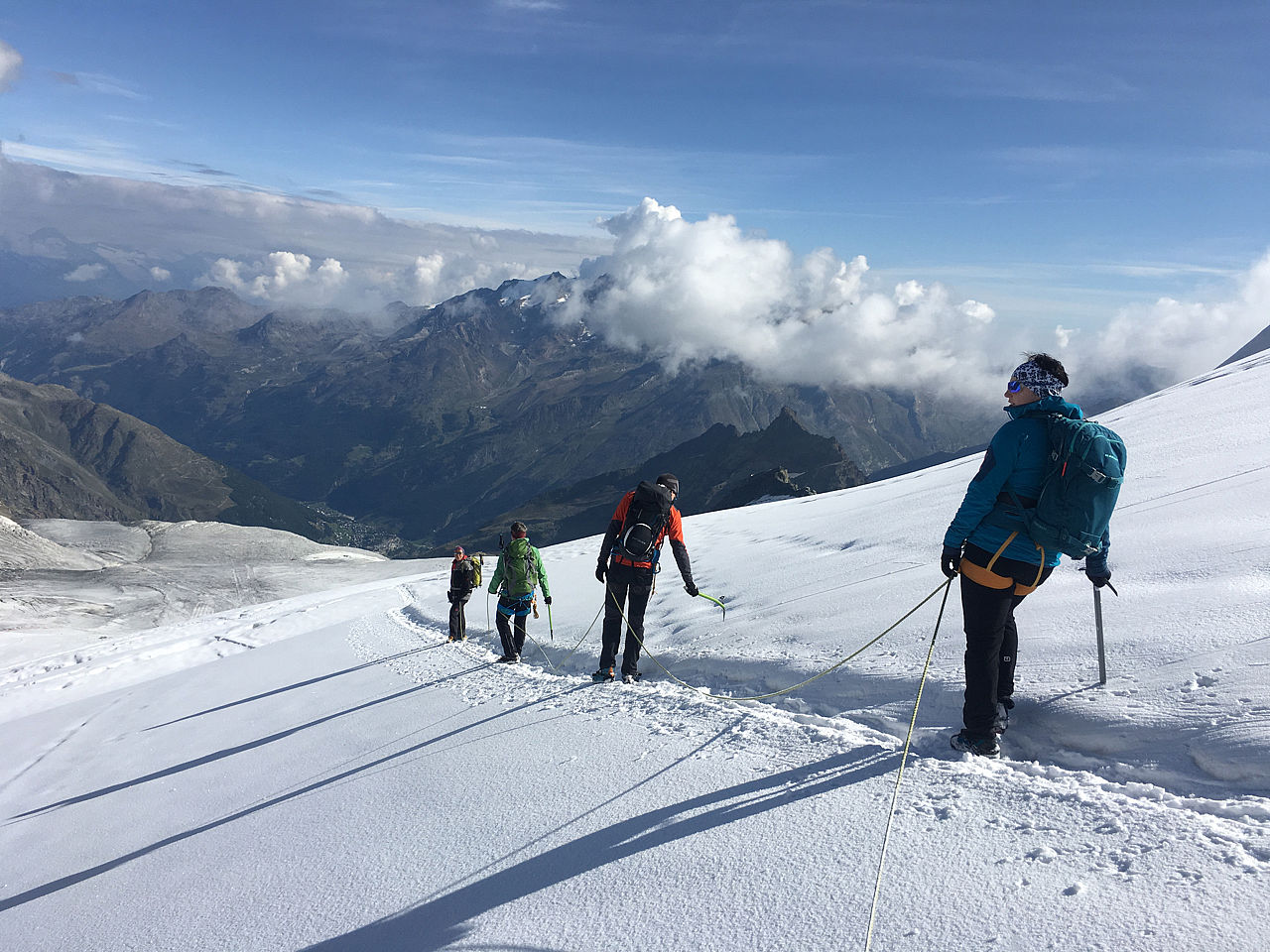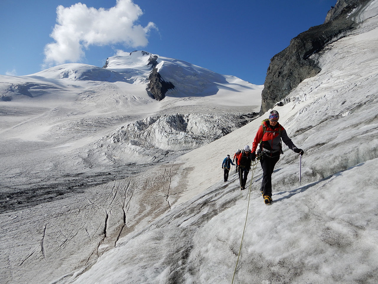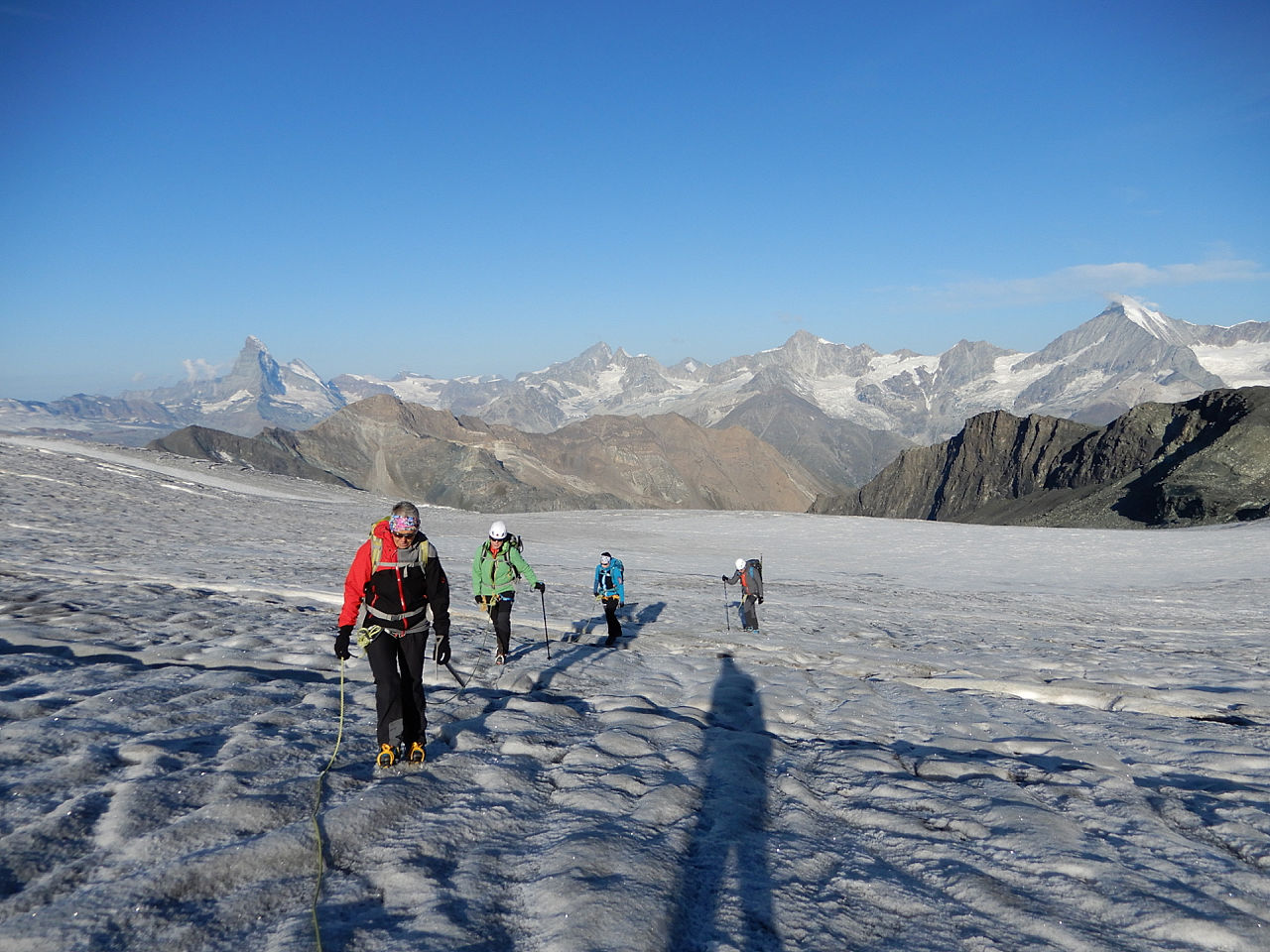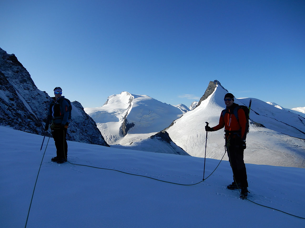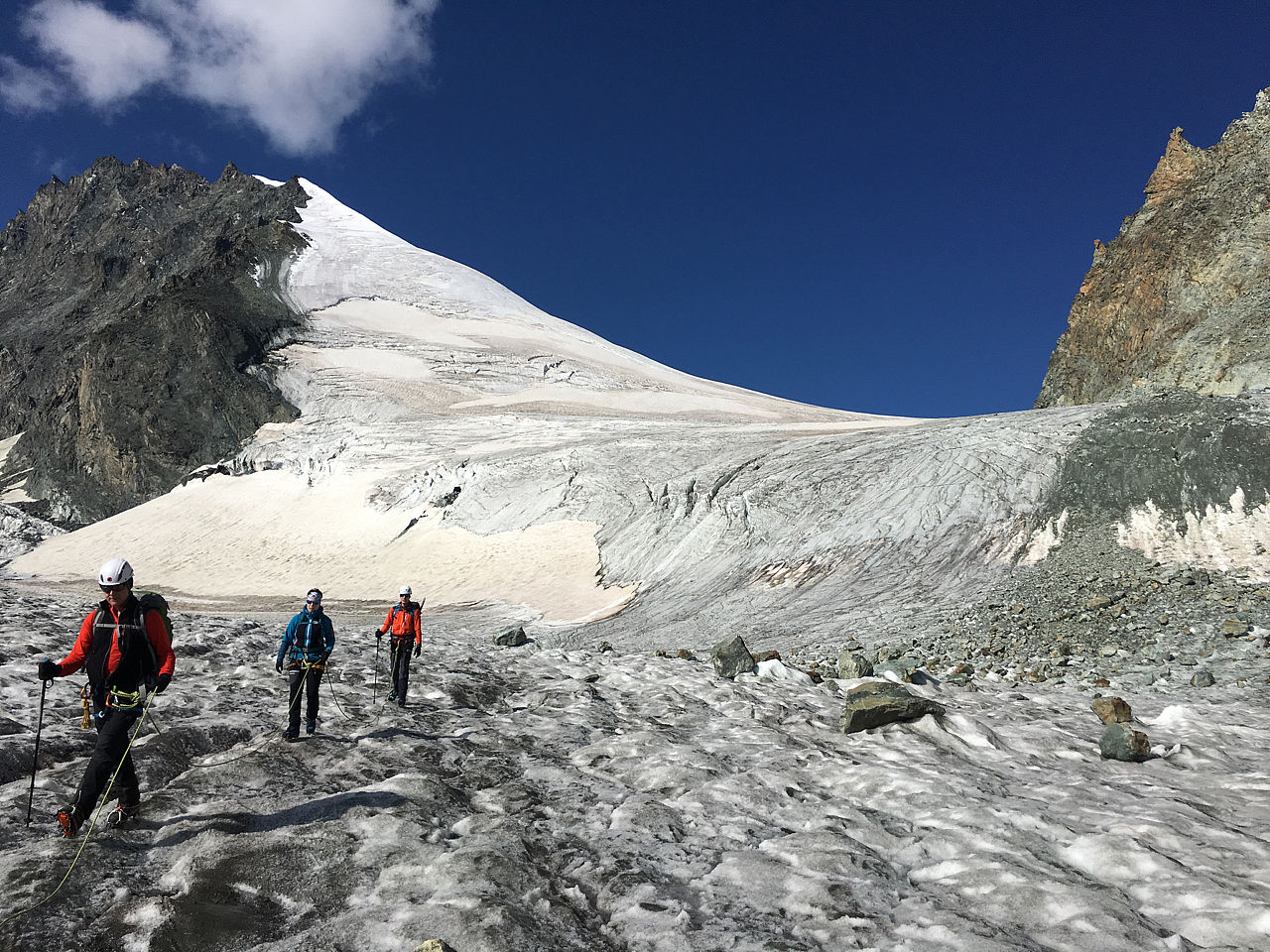 Drei wunderbare Tage hoch über dem Mattertal und dem Saastal im Schweizer Wallis. Ständig beobachtet vom Dom, dem höchsten eigenständigen Gipfel der Schweiz. #bookyourmountainguide