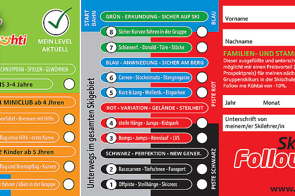 Die Skischule Follow me arbeitet im Kinderbereich seit mittlerweile 13 Jahren mit einem eigens für Kühtai entwickelten Lernsystem.