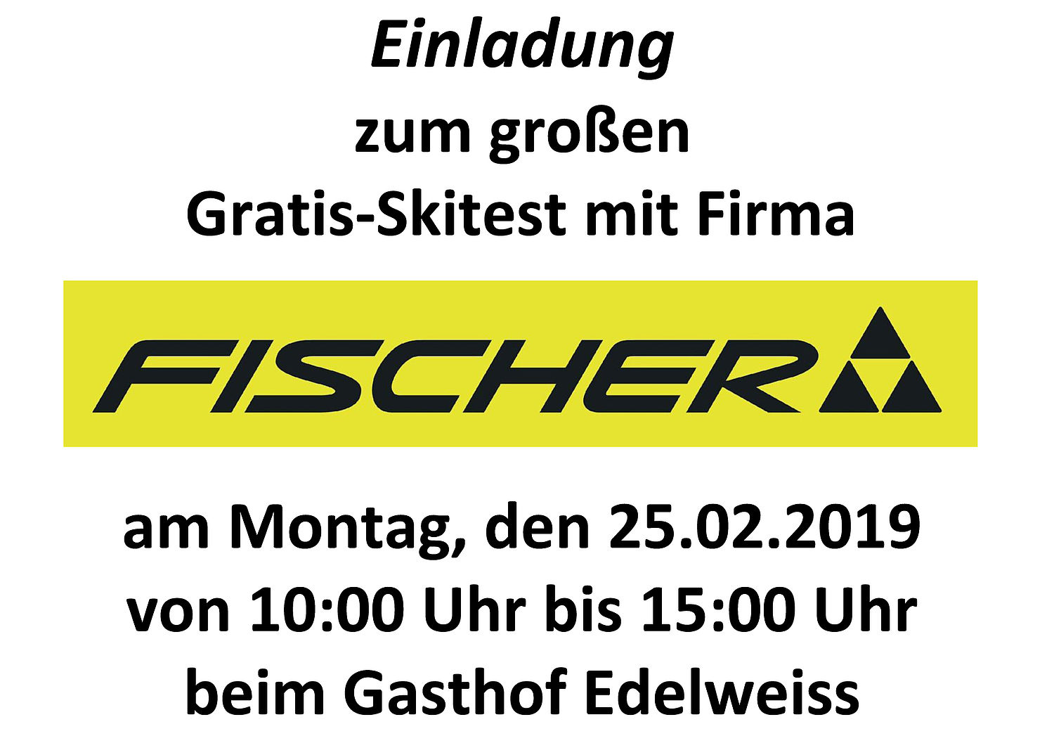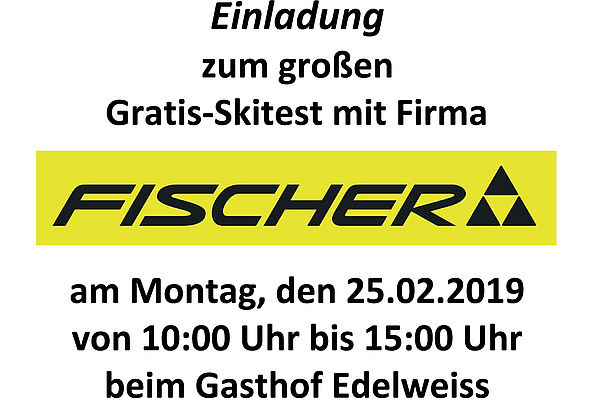 Am Montag, den 25.02.2019 findet wieder ein exklusiver Skitest mit der Firma Fischer statt.
